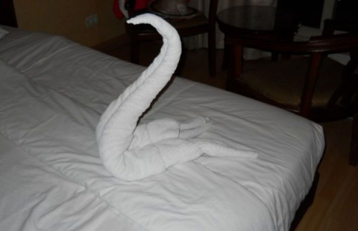 Prosoapele impaturite in forma de animale sunt populare pe vasele de croaziera, la pensiuni si hoteluri, pentru a-i binedispune pe clienti.