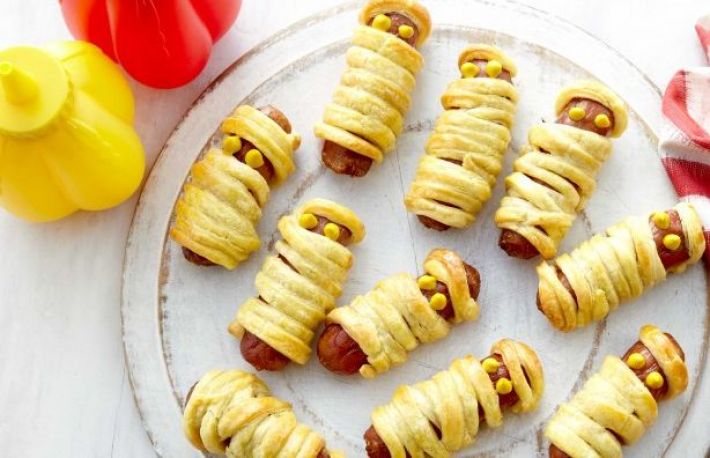 Decorati mumiile, cu ochi de mustar si gura de ketchup si serviti-le pe un platou.
