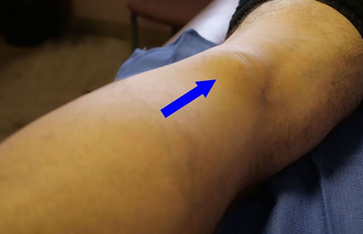 4. Semne de extindere. Uneori, chistul Baker se poate mari si se poate raspandi in muschiul gambei. Cand se intampla acest fenomen, muschiul se inroseste, luand aspectul unei eruptii cutanate. De asemenea, piciorul s-ar putea simti cald (de eritem), iar partea inferioara s-ar putea umfla (edem ). Umflarea este cauzata de chistul marit care apasa pe venele piciorului. Cumva acest chist marit este similar cu afectiunea numita tromboza venoasa profunda.