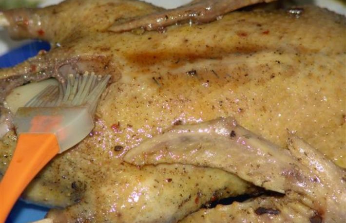 Daca pentru friptura folositi rata salbatica, aceasta se marineaza, se lasa in aceasta solutie o ora, dupa care se impaneaza cu slanina si se da la cuptor.