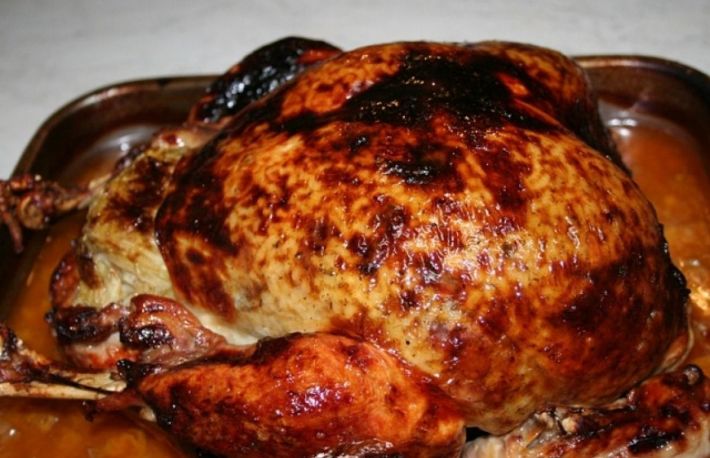 Se umple curcanul, se coase si se frige.