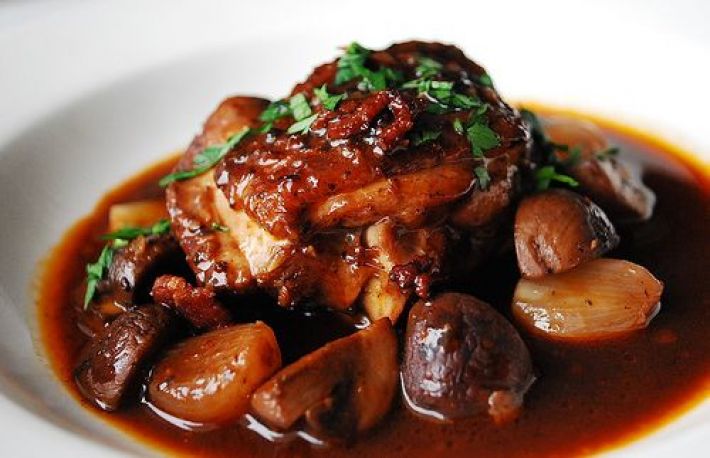 Cocosul cu vin sau, in limba de provenienta, coq au vin e o reteta clasica din diversa gastronomie a Frantei. Se spune ca un preparat taranesc sta la baza acestei retete, unul dintre cele mai vechi ale bucatariei din Hexagon.
