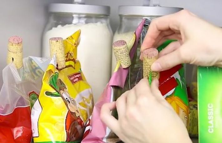 5. Dopul de pluta, sistem de pastrare a condimentelor si alimentelor din pungi. Dupa ce ai desfacut, sa zicem, punga de orez, e necesar sa o tii cumva stransa la gura pentru a nu orezul de praf. O varianta ar fi carligul de rufe, insa daca ai multe pungi de acest gen, s-ar putea sa ramai cu rufele neintinse :) Asa ca incearca metoda cu dopul de pluta. Pe asta, oricum il aruncai, dupa ce savurai un vin bun. Asadar, taie dopul pe cant, pana la jumatatate. Se va forma o fanta care va fi, de fapt, lacatul pentru punga ta de orez! Ingenios, nu-i asa?