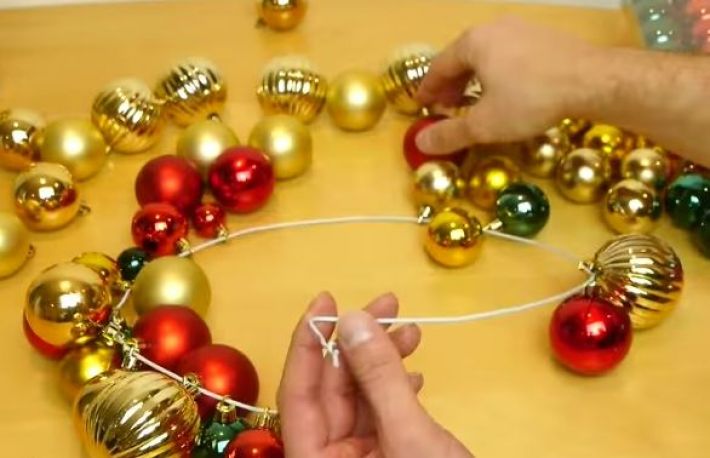 3. Dupa ce ai indesat bine globurile pe umerasul deformat, prinde capetele de sarma unul de celalalt;