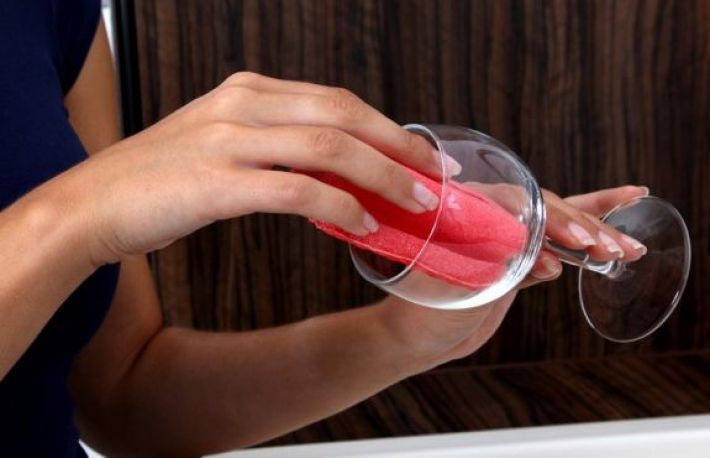 5. Pune paharele cu gura in sus. Stim, o sa spui ca se scurg mai repede cu gura in jos. Asa o fi, dar nu vei putea evita aburirea lor! Pentru a nu avea probleme, sterge paharele cu o panza de calitate, de preferat din bumbac, imediat ce au fost spalate si clatite.