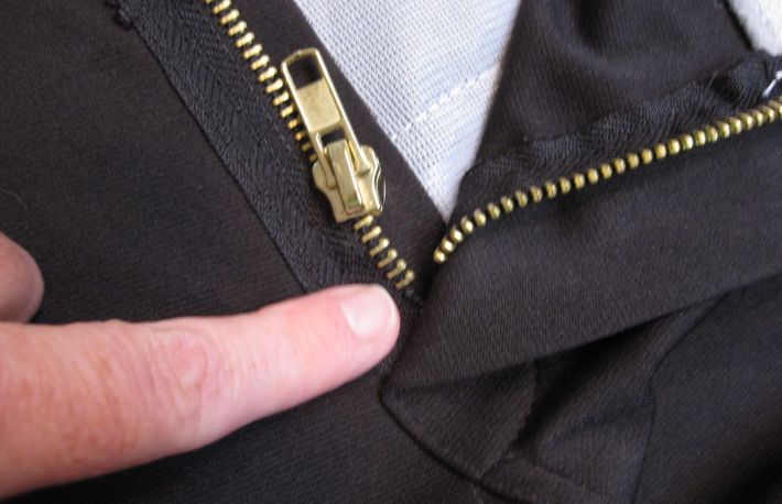 Verificati fermoarul pe fata si pe dos, pentru a vedea daca s-a prins o bucata de material in el si cat este de lunga aceasta.