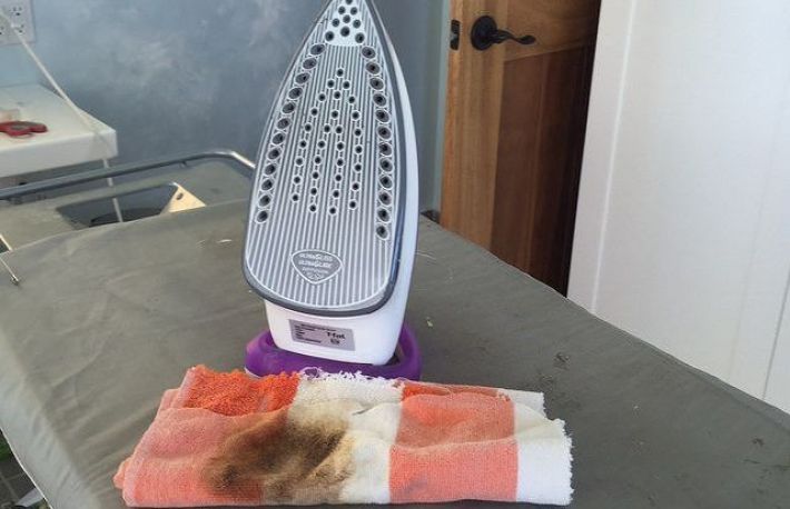 - dupa ce ai indepartat arsura, ia o carpa uscata si sterge fierul.