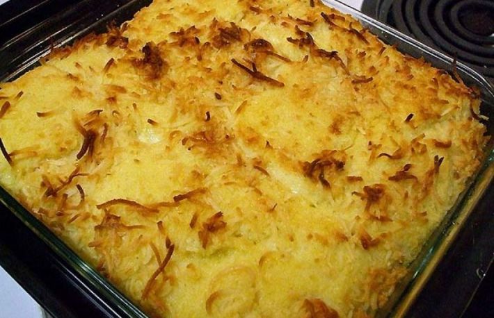 Se unge o forma cu unt, se presara pesmet, se toarna compozitia si se coace la cuptor o ora.