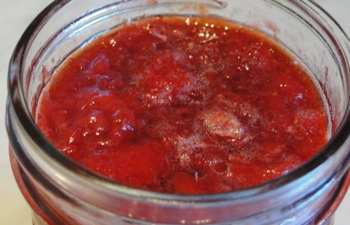Se lasa sa se limpezeasca si se pune In tingirea de dulceata zaharul cu un pahar de zeama de fragi.