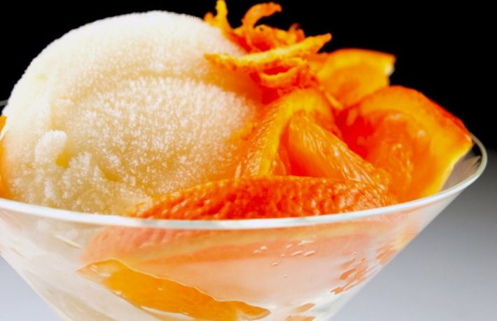 In lipsa de portocala rosie, se pune una alba, putin inrosita cu o picatura de carmin, ca sa dea culoarea roza a serbetului de portocale.