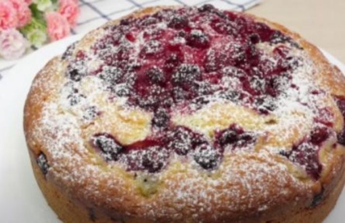 - presara zmeura/fructele de padure pe suprafata amestecului;