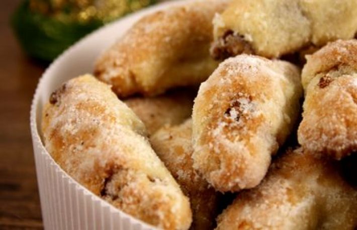 Cornuletele dulci sunt asimilate de multi romani sarbatorilor de iarna! Se prepara simple sau cu diverse umpluturi, in functie de preferintele fiecarei gospodine. Azi iti vom prezenta o reteta din batrani de cornulete cu nuca.