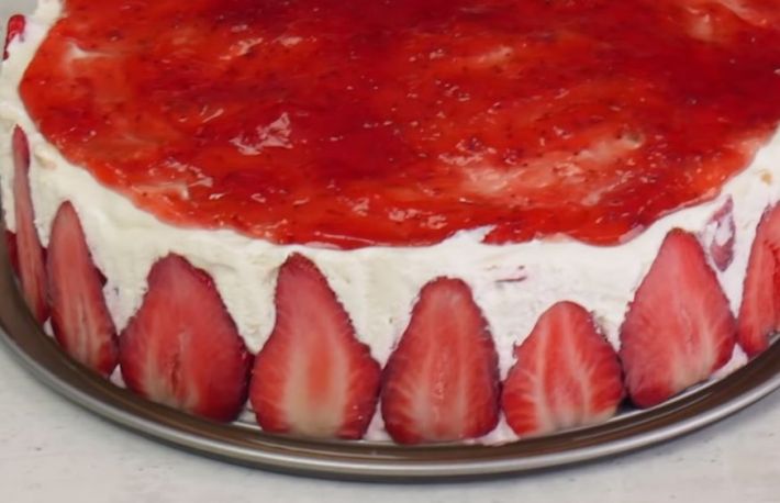Astazi, iti prezentam un desert delicios si usor de facut. Este vorba despre prajitura cu iaurt si capsuni. Acest desert nu necesita coacere!