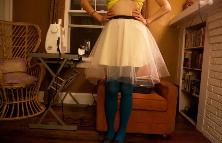 Intoarce jupa pe fata, pentru a nu se vedea cusaturile.