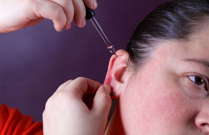 Solutie salina. Amesteca o lingura de sare intr-un pahar cu apa calda si las-o sa se dizolve. Imbiba intr-un tmapon de bumbac cateva picaturi de ureche si lasa solutia sa spele canalul urechii. Foloseste aceasta operatiune ori de cate ori este necesar.