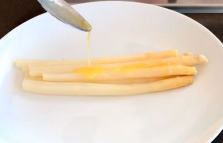 - amesteca cu unt si serveste. Da sparanghelul alb de pe foc, amesteca-l cu putin unt topit pentru aroma si serveste-l fierbinte. Alternativ, il poti servi cu un sos traditional olandez.