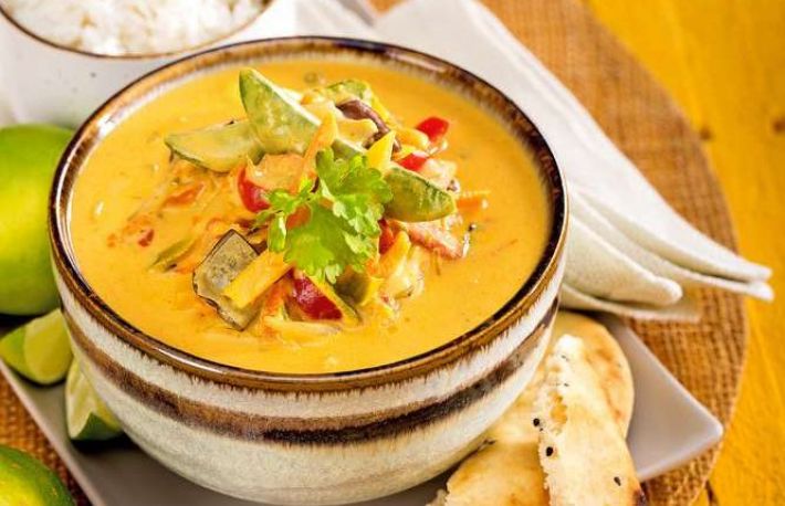 - serveste amestecul thailandez de legume cu orez si paine naan.