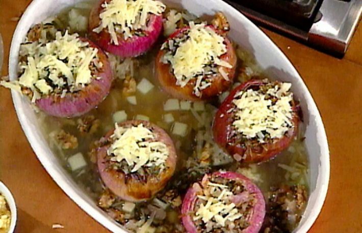 Se umple ceapa. Se asaza intr-o cratita se da la cuptor sa fiarba putin, la foc potrivit.