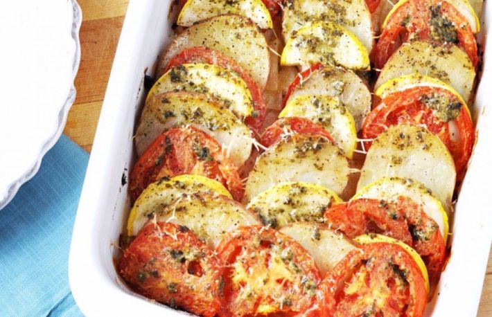 O reteta gustoasa de legume sunt dovleceii cu rosii la cuptor