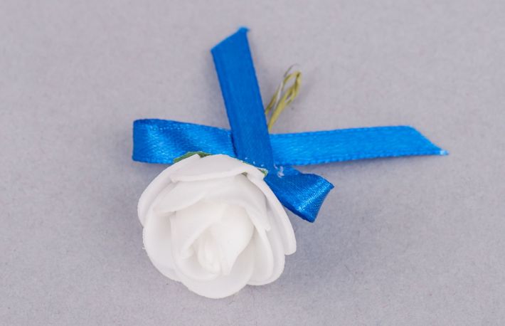 Trandafirii albi, asortati cu fundita in diverse culori (rosie, alba, mov, ivory sau lila) vor completa cu siguranta costumele invitatilor prezenti la nunta. Dupa eveniement, domnii pot pastra ca amintire micile flori de pus in piept.