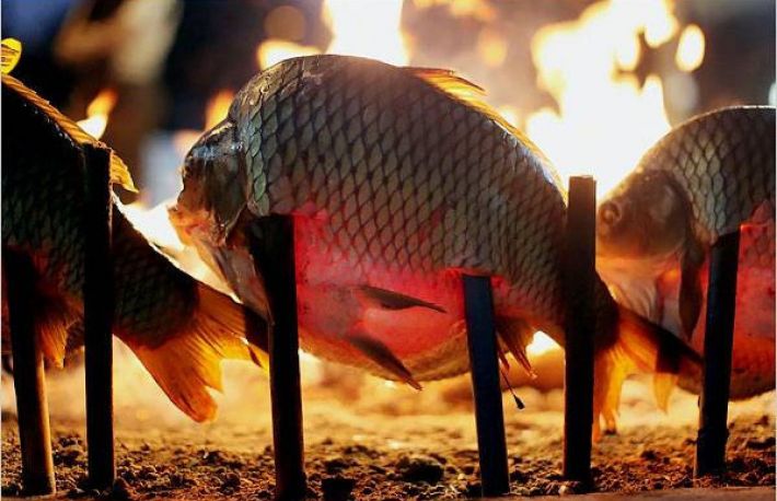 Atunci cand aveti posibilitatea sa preparati in aer liber o carne suculenta la protap, puteti inlocui carnea de porc, de oaie sau de berbecut cu un crap mare si proaspat, pescuit chiar de dumneavoastra.