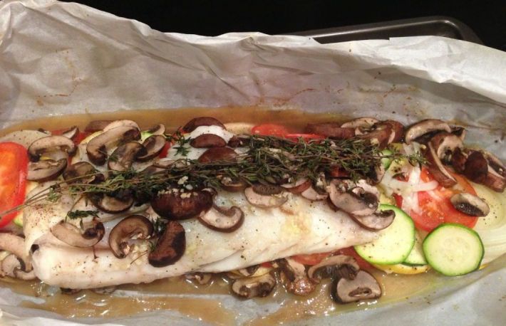 Iata o mancare de lin delicioasa cu ciuperci care poate fi servita cu un pahar de vin alb.