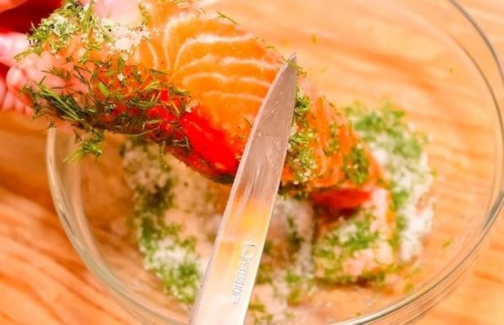 - acesta este un fel de mancare traditional nordic. Pestele marinat nu se gateste! Pe langa preparare pe baza de sare si zahar, se folosesc diferite ierburi care sa dea aroma somonului;