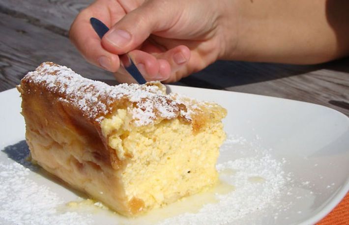 Cand crema a crescut, se toarna incet laptele cald, amestecandu-se continuu.