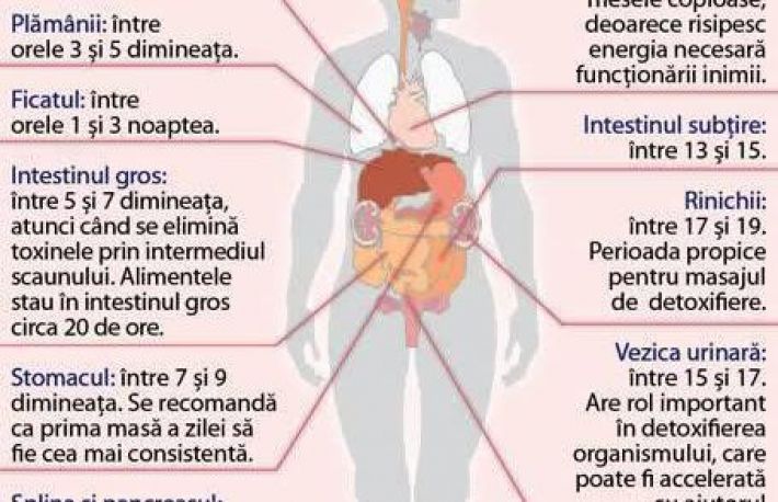 Asadar, in aceste intervale orare este foarte bine sa oferi organelor interne cele mai bune conditii de functionare. Despre toate acestea, intr-un articol viitor.