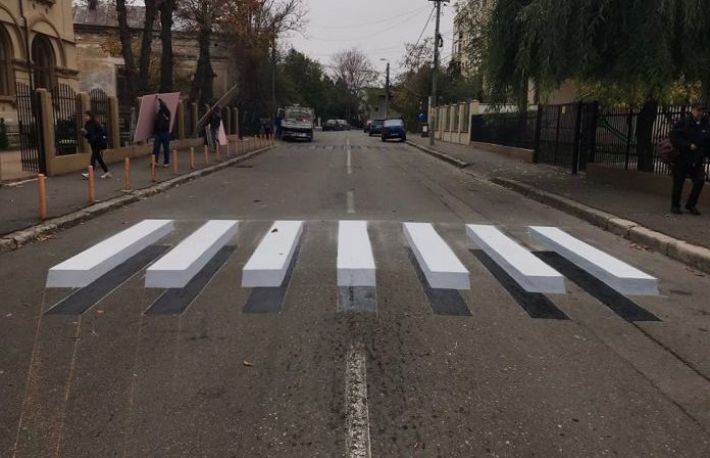 Prima zebra 3D din Romania. Filmuletul postat pe internet cu trecerea de pietoni 3D din Islanda, a inspirat un grup de elevi ai Liceului de Arta Margareta Sterian din Buzau. Acestia au realizat prima trecere de pietoni 3D din Romania!