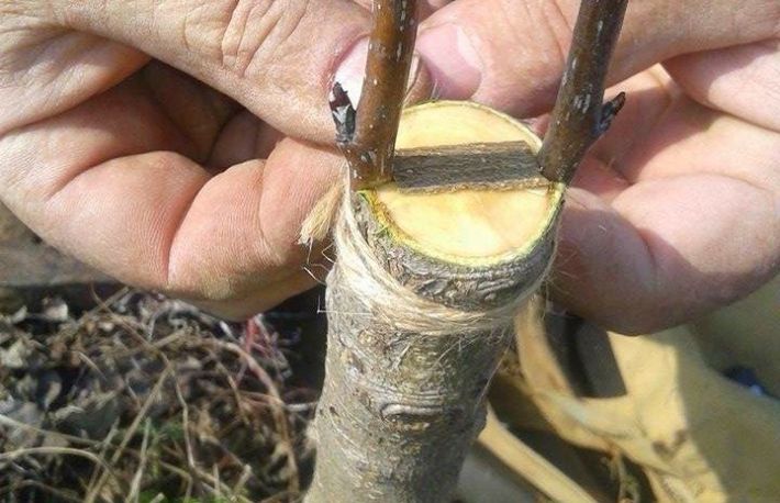 Altoirea in despicatura. Important. Alege doar pomi cu diametre mici/ medii. Pentru diametre mari, se recomanda altoirea sub coaja.