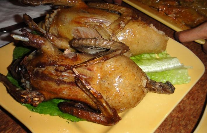 Se umplu cu o umplutura facuta din carne de vitel tocata, paine muiata in lapte si stoarsa si ficatul de porumbel, toate date de doua ori prin masina si amestecate cu un ou, ceapa prajita in unt, sare, piper, patrunjel tocat.