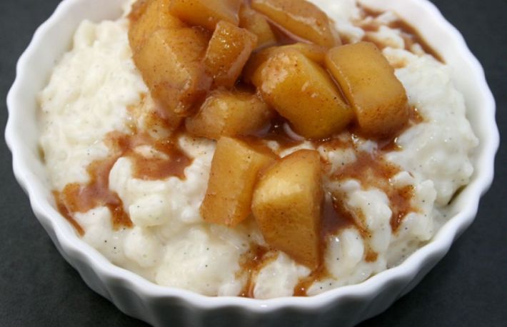 Budinca de orez cu mere poate fi un preparat de post daca inlocuiti untul cu margarina vegetala.