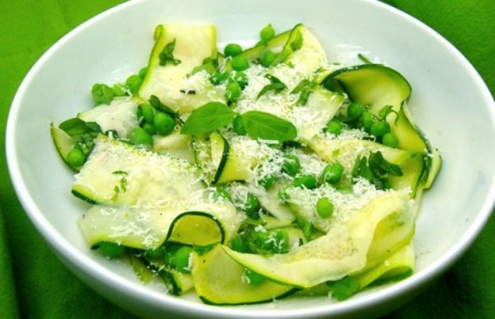 O mancare de legume consistenta, care poate fi consumata si de vegetarieni este mancarea de dovlecei cu mazare si verdeata.