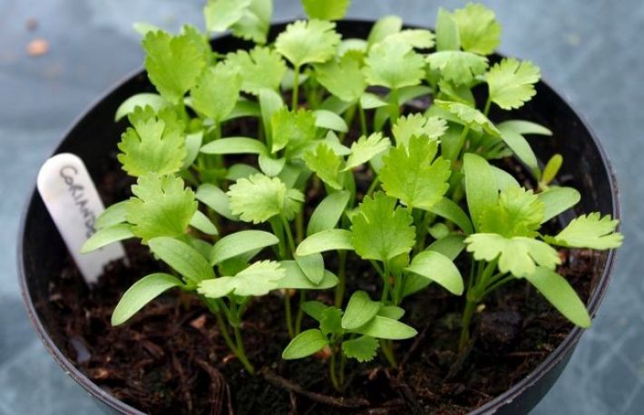 Coriandru. Aceasta planta cu un miros deosebit are nevoie de sol usor cu aciditate neutra. Seamana semintele intr-un ghiveci de flori in randuri. Uda planta in mod regulat. Rasadurile de coriandru apar in cateva saptamani de la plantare.